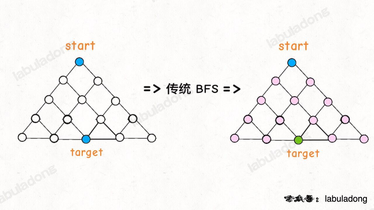 DFS 也可以找最短路径,但是时间复杂度相对BFS高很多。DFS 实际上是靠递归的堆栈记录走过的路径,你要找到最短路径,肯定得把二叉树中所有树杈都探索完才能对比出最短的路径有多长,而 BFS 借助队列做到一次一步「齐头并进」,是可以在不遍历完整棵树的条件下找到最短距离的。